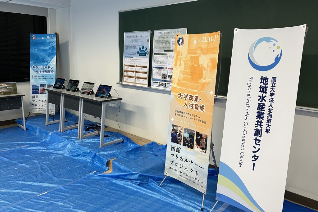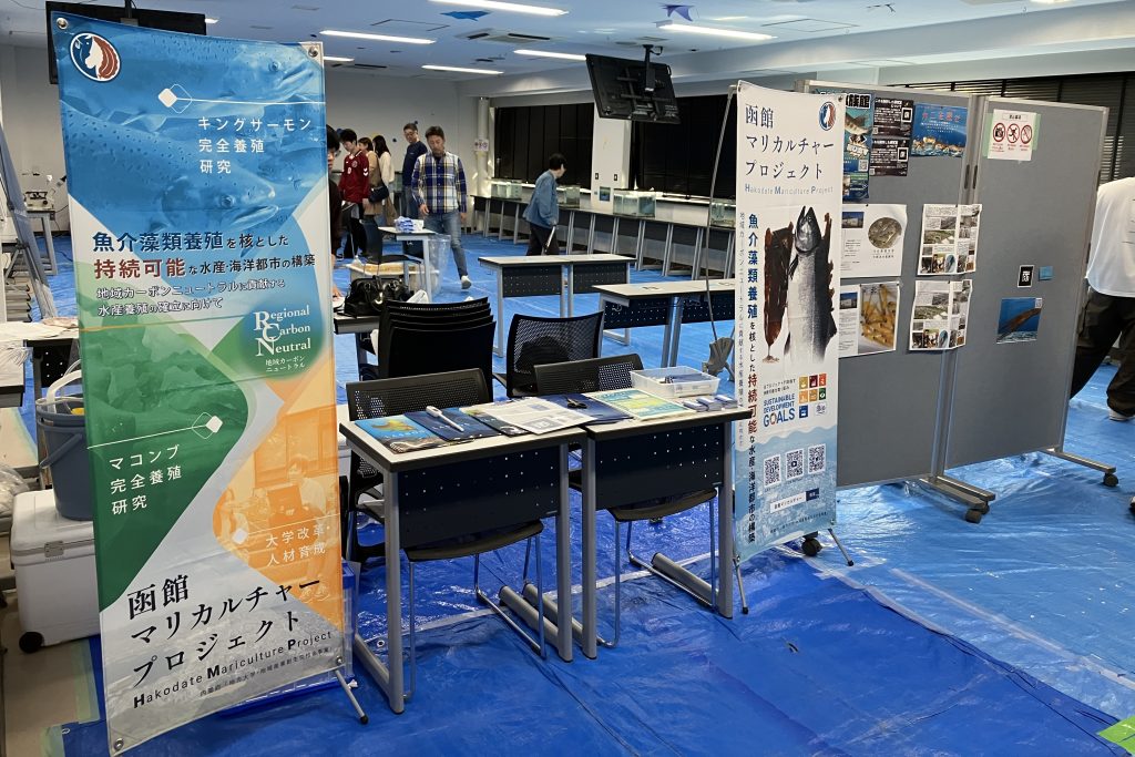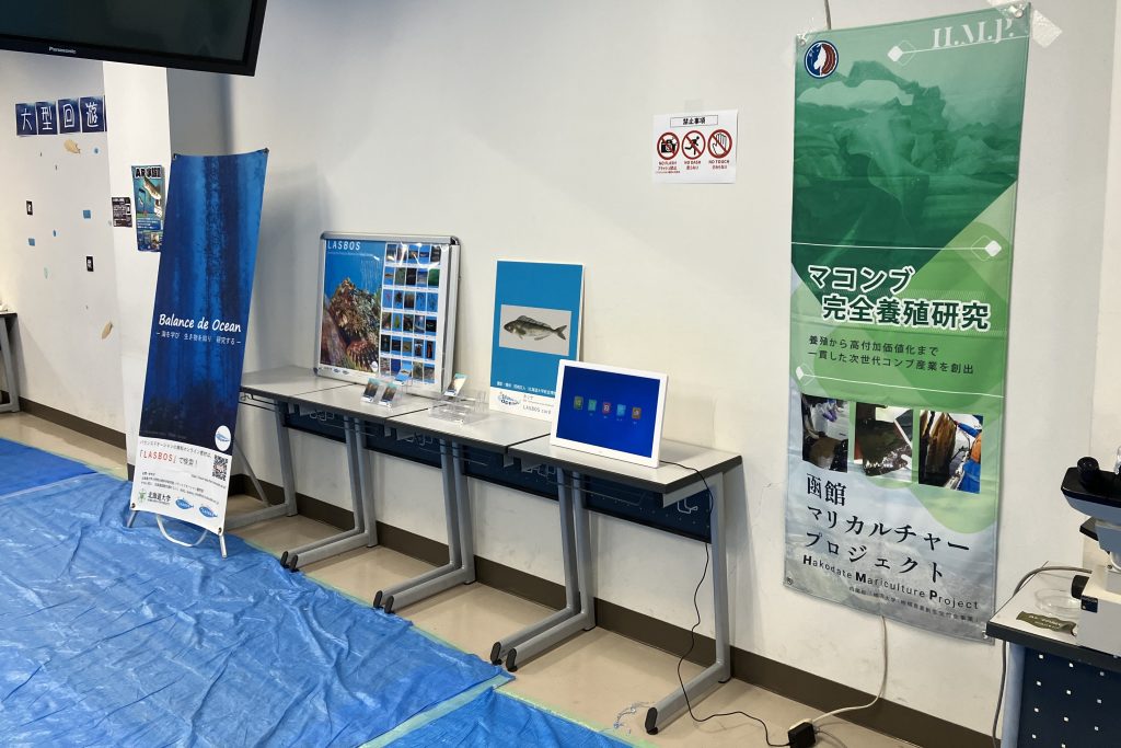 10月12日(日)、13日(月・祝)に北海道大学函館キャンパスで開催された「第63回北水祭」において、北水祭実行委員会による企画展示の一環で函館マリカルチャープロジェクトの バナースクリーンなどの展示が行われました。