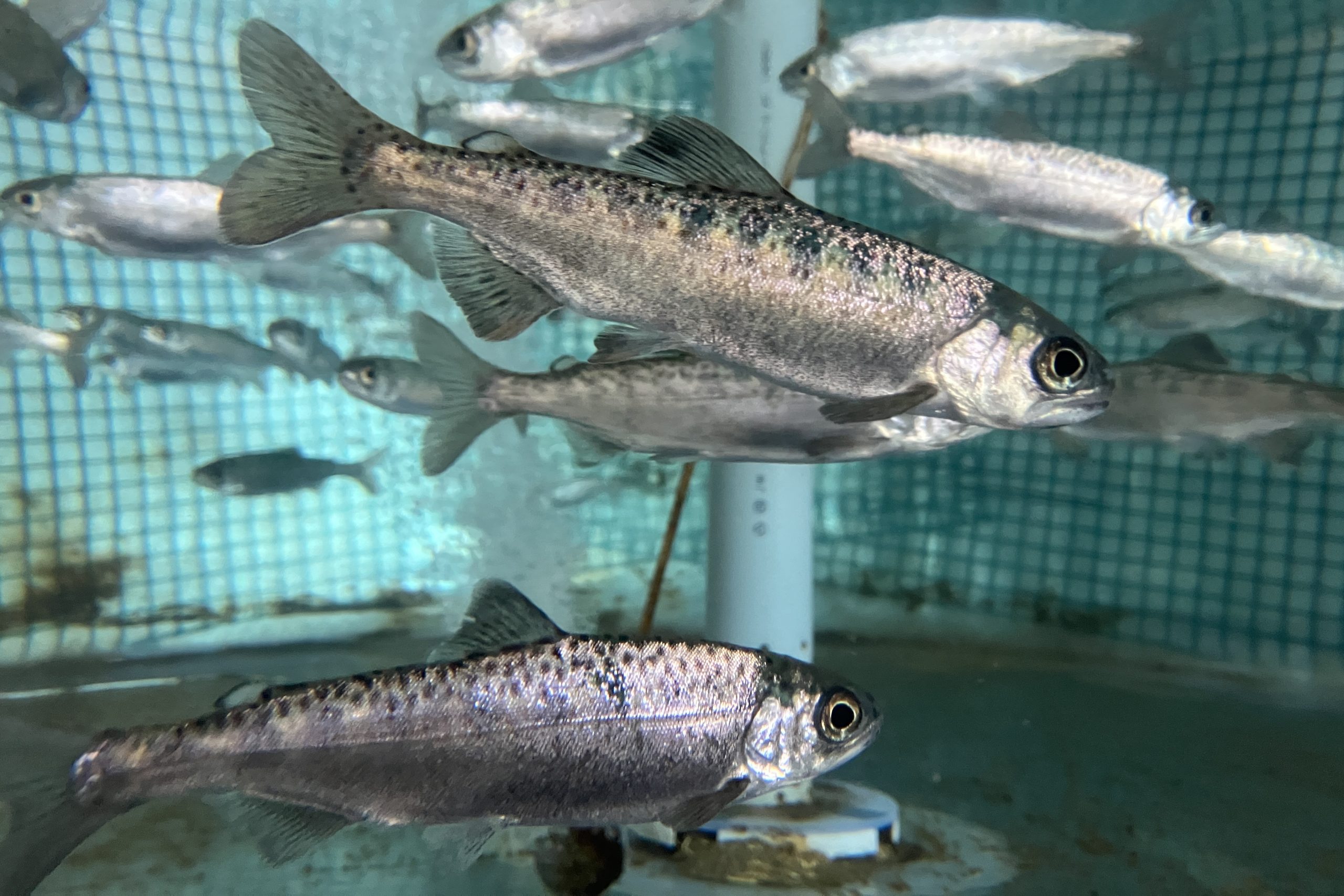 函館マリカルチャープロジェクトでは、令和4年度から内閣府の地方大学・地域産業創生交付金事業としてキングサーモンの完全養殖技術の確立に取り組んでいますが、このたび、令和5年に作出した人工種苗(約200尾、平均約800g)を、函館漁港内に設置した生け簀へ 投入し、2回目の海面養殖試験を開始しました。