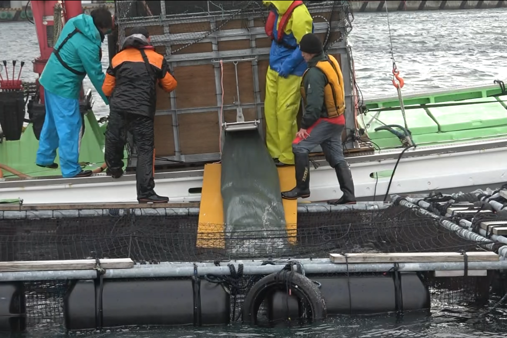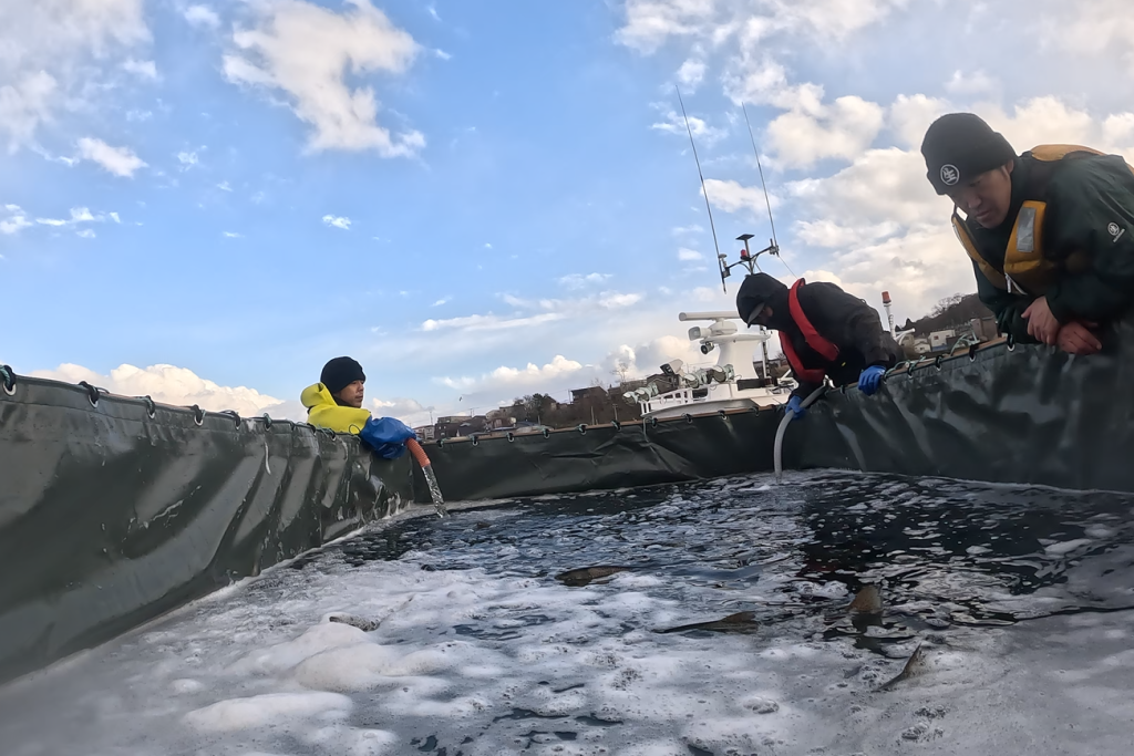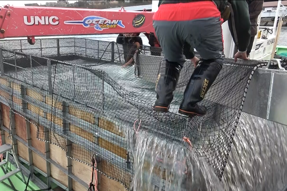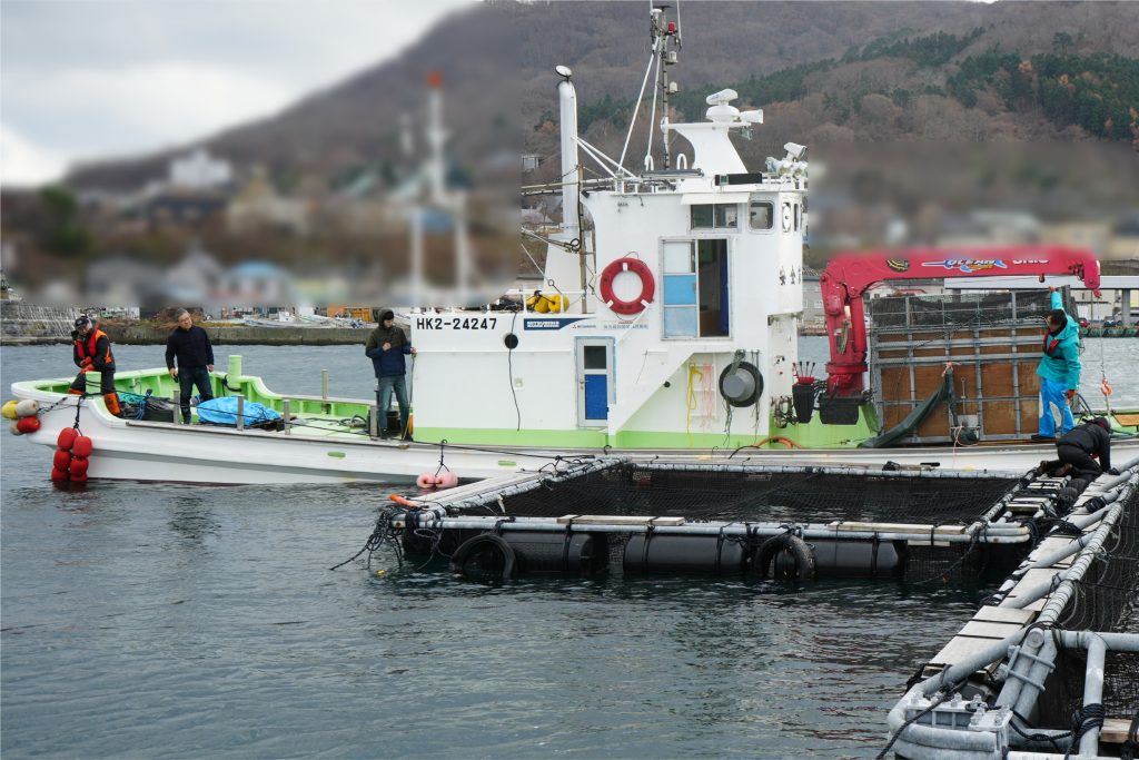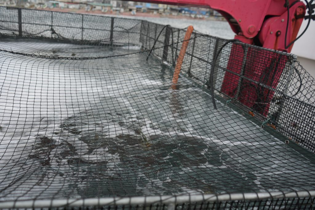 なお、この海面養殖試験は来年6月下旬の水揚げまで行われる予定です。
