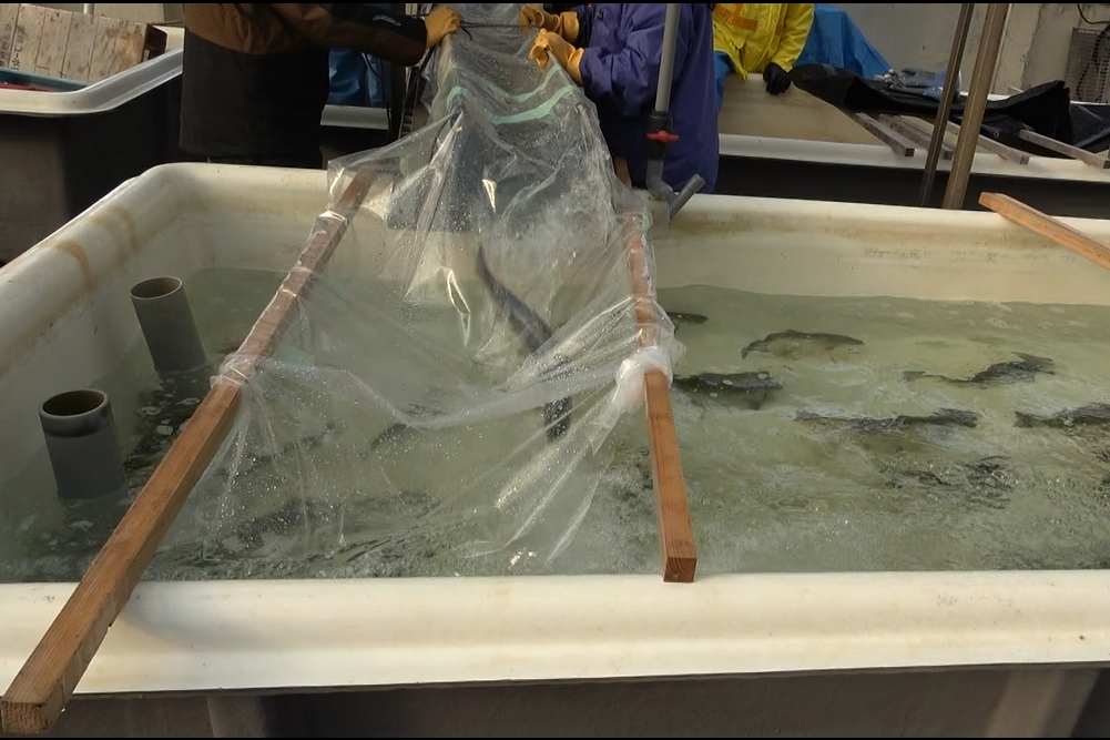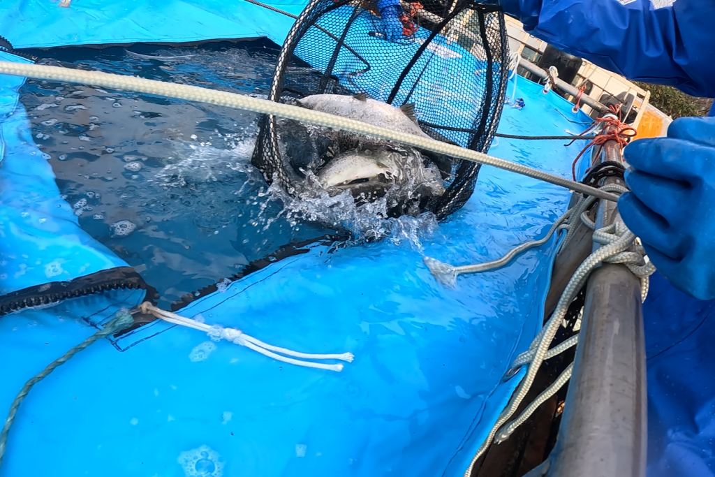 令和5年作出のキングサーモンの漁港内海面養殖試験が始まりました(2025.11.28)
