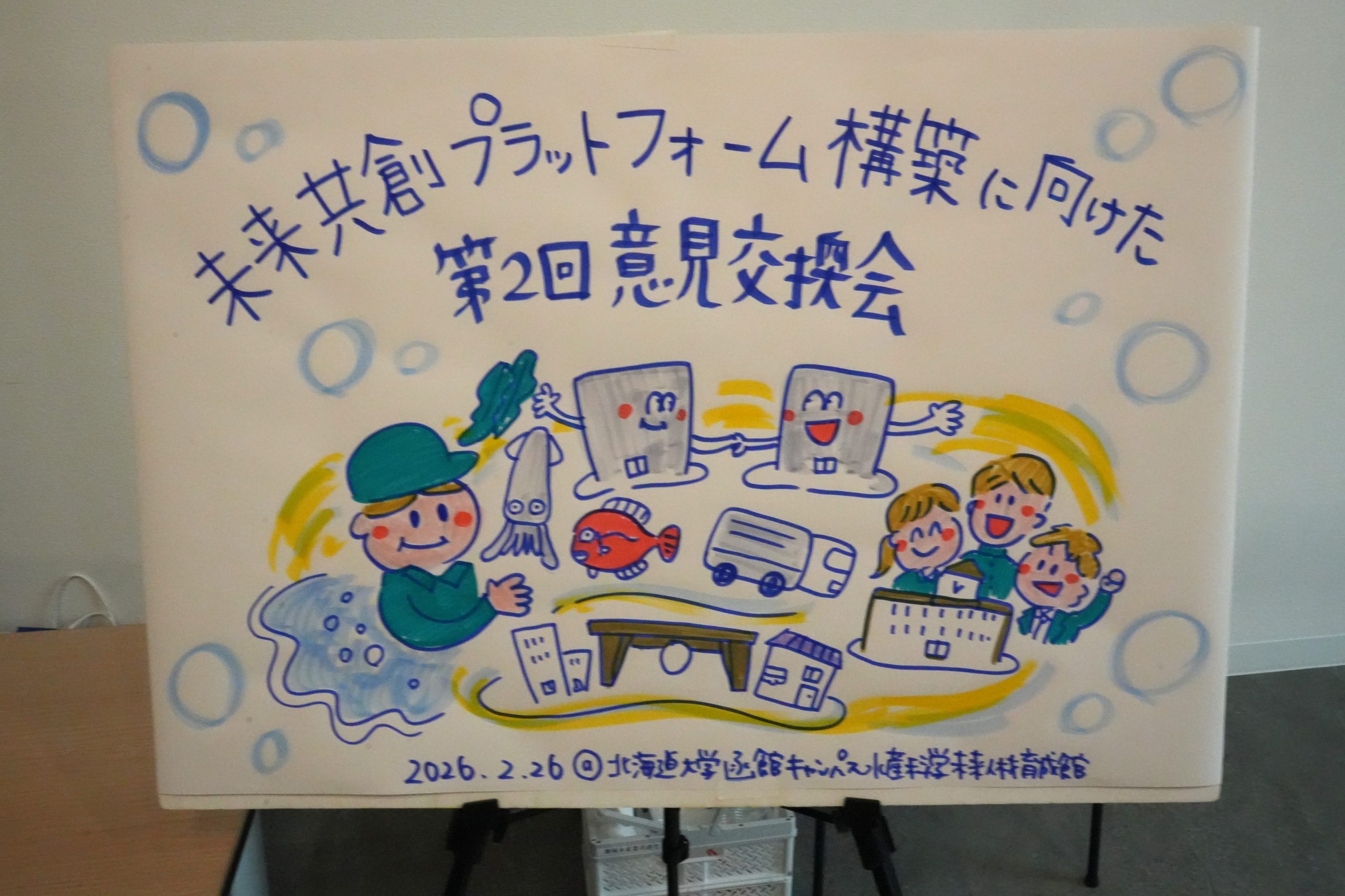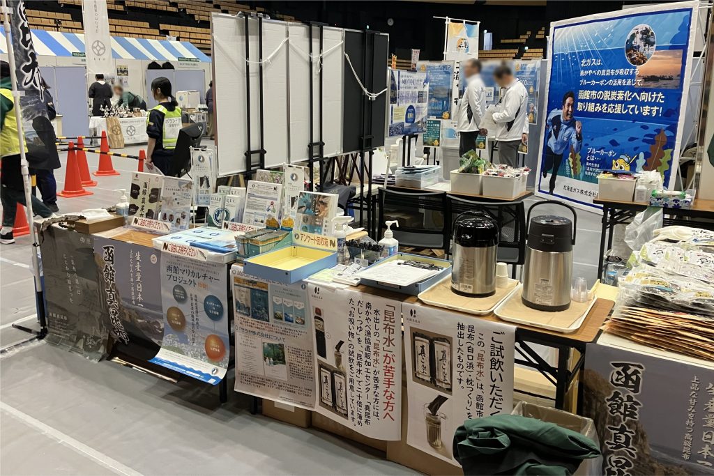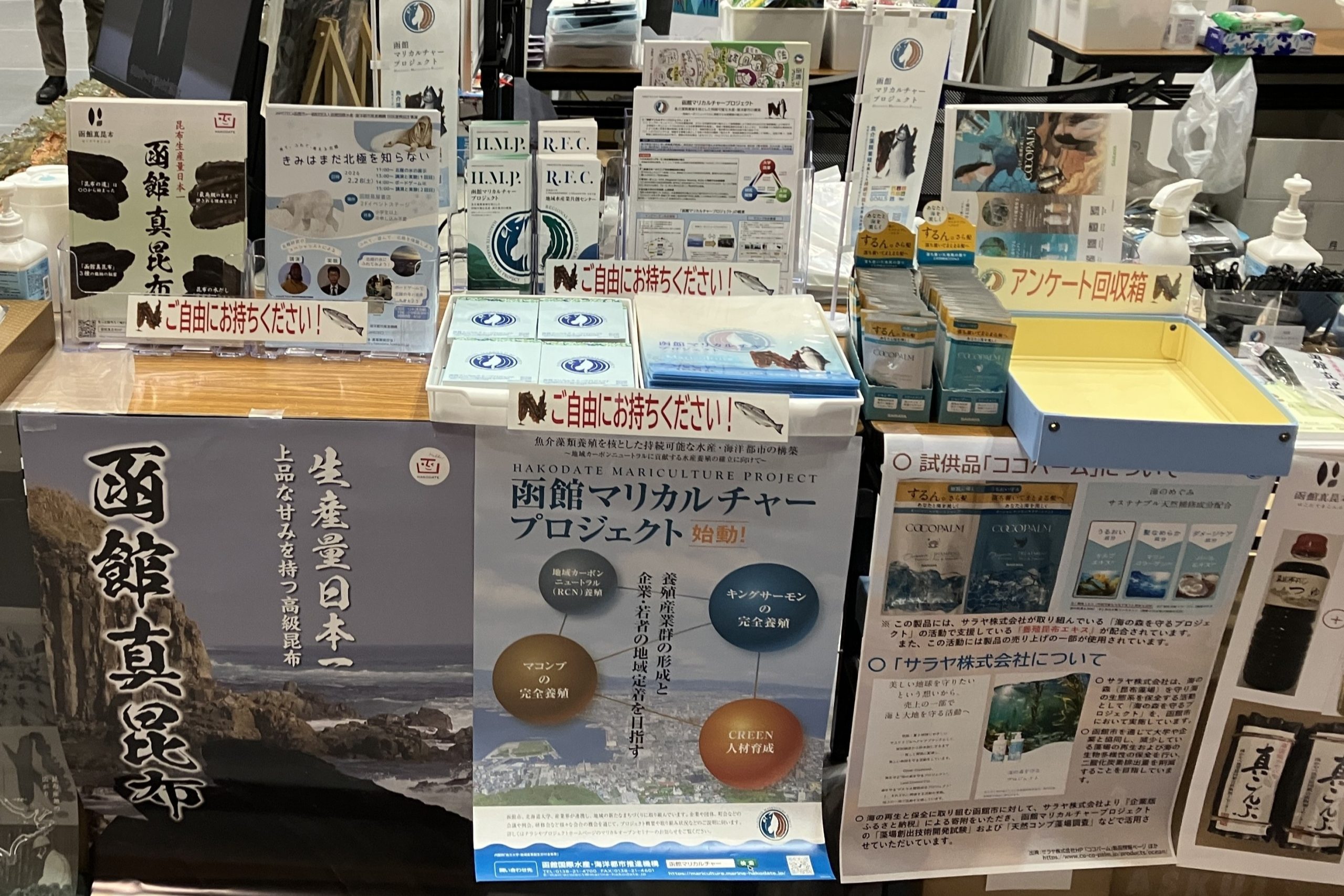 「函館マリカルチャープロジェクト」では、2月21日(土)、22日(日)に函館アリーナで開催された「はこだてFOODフェスタ2026」に出展して「函館真昆布」のPR活動を行いましたが、併せて、来場者の方にプロジェクトの周知活動も実施しました。